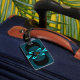 Konstruktion för skärande cyan och svart vektor i bagagebricka