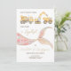 Släng allt och gör en stänk! Vår anpassningsbara inbjudan kombinerar mäktiga byggfordon med glänsande sirens fisktunga, perfekt för syskon oavsett kön. Bygg, stänk och fira i stil! Anpassa med dina evenemangsuppgifter för en oförglömlig fest!