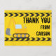 Cool anpassad konstruktionsfordon Tack-kort för ett barn som älskar gula konstruktionsfordon i svart och gult. Rolig grävmaskinsdesign för en liten pojke som älskar bilar och lastbilar. Anpassa med ditt barns namn under det svarta och gula varningsbandet.