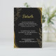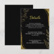 Fyll i din bröllop-kontorssvit med detta svarta och guld-hyttekort, designade för viktiga bröllop-detaljer med dina gäster. Det här kortet är en perfekt för att inkludera information som logi, transport, vägbeskrivning eller bröllop webbplats, och har en utformning av löv med Faux-accents på svart bakgrund. Med hjälp av papperskorgen i fullt, svart och guld bröllop, säkerställer detta visitkort att alla biet på ditt bröllop-kontor matchar på ett snyggt och elegant sätt. Perfekt för modern, lyx eller svartvit bröllop.