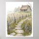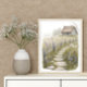 Ta in landskapets fredliga charm i ditt hem med den här fantastiska illustrationen av vattenfärgen. Med en stuga i tak, en väg, fält i lavare och en cykel i vintage, fångar den här grafiken hjärtat av stil i cottagecore. Perfekt för mysiga vardagsrum, shabby chic-kök eller som en tankfull gåva till älskare av långsam levande och pastoralisk skönhet.