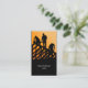 Det här enkla men eleganta affärskortet av takyrer i professionell har silhuetterna från tre takpannor som arbetar på tak i ett hus mot orangens solnedgångshus. Ditt företag namn och tagg/text visas i den nedre delen av kortet. Den abstrakt som tilltalande tonen på kortet gör att det är lämpligt att stämpla ditt tak-, byggnads-, byggnads-, entreprenör-, handels- och reparationsföretag, men kan även användas som ett vanligt namn-kort för nästan alla företag eller branscher.