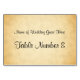 En bröllop bord-platskonstruktion med en tryckt bakgrundsdesign i stil i vintage som är gammal papper, designad för att se ut ungefär som ett faux parchment mönster. Bakgrunden är en mönster-utskrift i gulbrun beige/tan färg. Det finns svart snyggt som kan vara personlig. Sittkort och bordsnummer för gäster från bröllop.