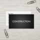 Denna konstruktionsvisitkort har varit designad med ett svart modernt randmönster som skrivs lätt ut i bakgrunden och, presenterar ordkonstruktionen i en djärv katastrof på bekläda med din information om affären på understödjasidan.