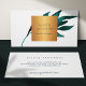 Sofistikerad enkel och modern glamorös lyxvara av feminin professionell tittar affärskort med en handmålad löv med en djup marin blå gren och med en faux ro guld kopparmetallisk geometrisk märkning. — Perfekt för mode stylist | Dekorator för insida | Konstruktör | Arkitekt | artist | florist | evenemangsplanerare | Målare | Övriga professioneller för kreativ | Ägare av mode boutique | CHEF DAM | Konstruktör för trädgårdsodling. — Anpassa den med ditt namn och detaljer i fyrkanten på framsidan och på baksidan! — Kontakta mig om du behöver hjälp.