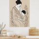 En mors kärlek är som det mjuka fallande körsbärsblomman - tyst men djupt rörande. Denna minimalistiska japanska konst om moderskap fångar den tysta styrkan och ömheten hos en mor som vaggar sitt barn. Inspirerad av traditionellt Sumi-e-penselarbete frammanar de känsliga linjerna och mjuka tonerna en känsla av Zen-lugn och djup känslomässig förbindelse. Ett tidlöst konstverk för dem som värdesätter enkelhetens skönhet och moderskapets kraft.