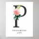 Detta vackra rustika blomsterkonsttryck med bokstaven P och ett anpassningsbart namn är en fantastisk bröllopspresent, babypresent, barnkammartavla och husvärmegåva!