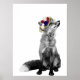 Konsttryck Räv Svart Vitt Blomkrona Poster