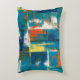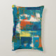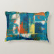 Lägg till en unik beröring till soffan med den här konstnärliga accentkudden. Den här konsuttryckssymbolens dekorfärg innehåller en blandning av blåtoner tillsammans med tips på orange, gult och vitt.