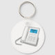 Telefon med en visning som säger att du kontaktar oss. Den här designen ser ut att vara effektiv i den här nyckelkedjan