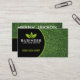 Denna utformning av affärskortet för att fånga öga är en perfekt för vårdföretag i gräsmatta som vill visa sin sakkunskap och sitt engagemang för sunda, livskraftiga lagar. Framsidan har en fet svart bakgrund med en grönt löv logotyp och ditt företag namn och mobilt nummer, medan baksidan belyser ett lush grönt gräs struktur med dina kontaktuppgifter och affärsinformation. Denna formgivning är både upplysande och tilltalande, skapar det som ett utmärkt sätt att ta sig ur konkurrensen och bygger ett bestående intryck.