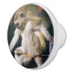 Keramisk knopp med en bild av en lustig apa sitta på ett staket när man funderar över livet.