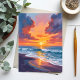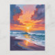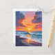 Beach Sunset Watercolor Ocean Painting-vykort