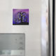 Ett digitalt ritat fantasi-landskap av silhuetterad träd som bär frukt i stjärnor och måne. Från mörken hänger grenar guldkedjor av pärlor som slutar i en mängd lysande stjärnformer, halvmånsstjärnor av måne och fullt, som var och en är fäst vid gren genom en gnistrande stjärnsprängning. Bakgrunden är en snurrande vriden himlar i blått och rosa som studeras med små ljusglimtar, med en spiralspalt av glittrande stjärnor som cirkulerar i träd.