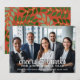 Företags julkort - Gröna botaniska blad och bär mönster på baksidan. Använd ett foto med motivet helst i mitten eller mot toppen. Ett mörkare foto fungerar bättre med denna vita textöverlägg. Skapa en unik och trendig God Jul hälsning med ett trendigt och glatt mönster på baksidan.