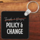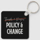 Pro Gun Control-nyckelkedjedesignen har "tankar och böner" som är inbäddade och ersatta med "Policy & Change", som tar itu med det aldrig avslutade vapenvåldet i Amerika.