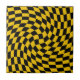 Retro warped kontrollerar schackbrädets utformning i en kombination av svart och gult färg. Retro-schackbrädet, tvångstrött 70-tal, psykodelic stil modern design för hemdekor, kontor och skolprodukter och återtänkta utcheckade gåvor.