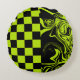 Kontroller och trål - grönt och svart kalk rund kudde