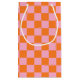 Abstrakt digital konst av orange och rosa fyrkanter i schackad form.