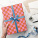 Abstrakt digital konst av orange och rosa fyrkanter i schackad form.