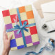 Abstraktens digitala färgad av beige- och regnbågsfyrkanter i en schackrad form.