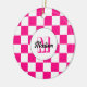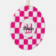 Kontrollerad Shock rosa, vit geometrisk retro Monogram ornament. Kontrollerade rutor för den geometriska retro-Helgdag från mönster för henne. modern shock rosa för vintage. Anpassa med din anpassningsbar till början och namn.