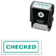 Se till att dina dokument, betalningar eller beställningar är tydligt markerade med vårt förstklassiga självtryckande frimärke med ord "CHECKED" i fetstilt, lättläst brev. Perfekt för kontor, företag och professioneller tittar ett snabbt, konsekvent och professionell sätt att validera pappersarbete och transaktioner. Visas här med grönt bläck. Det finns ett val mellan bläck färg.