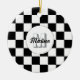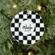 Kontrollerade rutor svart och vit retro Monogram julprydnad. Markerad kvadrat-kvadratgeometrisk återtro till Helgdag från mönster. Vintagen är svart, vit, modern kontrollant. Anpassa med din anpassningsbar till början och namn.