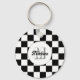 Markerade rutor för svart och vit återtro Monogram-nyckelkedja. Tillbehör, gåva till henne. Coolans återstyrda geometriska kvadrat mönster. Vintagen är svart, vit, modern kontrollant. Anpassa med din anpassningsbar till början och namn.