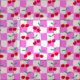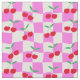 Det här är söta röda körsbär mönster på rosa och vita vassa kontrolltavlor. Det är en snygg design som tyg