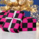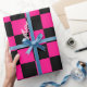 Kontrollerade rutor, shock rosa, svart geometrisk presentpapper