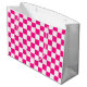 Markerad kvadrat shock rosa vit geometrisk retro mönster Gift Bag. Party Gift Wrapping Supplies åt henne. Coolans återstyrda geometriska kvadrat mönster. Vintagen är vit och shock rosa moderna kontrollör.