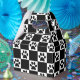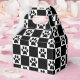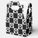 Svart och vit utcheckad design med svarta tassavtryck i de vita fyrkanterna.