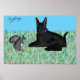 Mister Squirrel i djupa samtal med popand valp svarta tyska herdar.