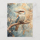 En delikat vattenfärgsmålning av en kookaburra med mjuka nyanser av blått, brunt och vitt för att fånga fågelns naturliga charm och serenskönhet.
