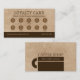 Det här är ett förmånskort för en kafé. Utformningen har en charmig gammal papper struktur med kaffebönor och ger rabatter till lojala kunder.
