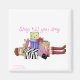 En överväldigad shoppare med många paket.. en söt magnet för den där "professionellen" shopparen i ditt liv.