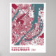 Ett vackert Köpenhamns karta i ett minimalt format, färg röd och blå.