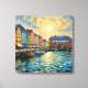 Gyllene ljus smälter över vattnet när färgglada stadshus i Nyhavn, förtöjda båtar och en väderbiten hamnbyggnad förvandlar Köpenhamn till en lysande nordlig dröm. Denna uttrycksfulla canvas-konst fångar värmen från den danska strandpromenaden med måleriska reflektioner, maritim charm och skandinavisk elegans. Perfekt för stilfulla interiörer, hotellrum eller reseinspirerade utrymmen, den ger lugn, färg och tidlös stadsromantik till vilken vägg som helst.