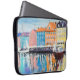 Köpenhamn på en strålande dag, färglöst byggnad oc laptop fodral