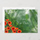 Denna Poppies Spara datum meddelande har en digital konst som målats poppies på en grönt med lagrar av växter och gröntar.