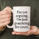 Driv dina juridiska drömmar med vår "Jag argumenterar inte, jag tränar bara för rätten"-mugg! Perfekt för blivande advokater, juristudenter och jurister.