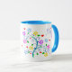 Önska grattis på födelsedagen till din mor med stil och väderkorn. Denna kopp med de flödafolk-konst blommorna som prickas med gulliga hjärtor och ett större "är vi *heart* dig" på baken, som påminner om av seventiesstilkonst, och skulle gör den perfekta födelsedaggåvan. Den presenterar en läcker design vid ilovecuttables och text som kan skräddarsy. Mycket färgrikt och söt som ska ses och använda för att tycka om kaffe eller tea (eller någon dryck).