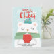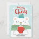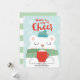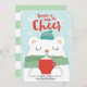 Söt vinterillustration av en isbjörn som bär en grön halsduk och blå hatt medan den håller en röd kopp varm choklad på en ljusblå vinterbakgrund. Design av Shelby Allison. Anpassa dessa kort med din hälsning och signatur.