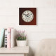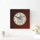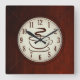 Vackra bruna träbakgrunder med nummer och kopp på ångkaffe i en mittcirkel. Fullständigt anpassade, lägg till/ta bort inslag eller anpassa den här fyrkantiga klockan med text.