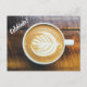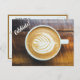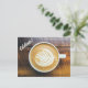 Kopp i kaffelatte med Löv-formskum på trä Inbjudan Vykort
