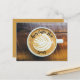 Kopp i kaffelatte med Löv-formskum på trä Vykort