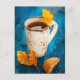 Kopp i te och höst löv på blå bakgrund av trä.Mjukt fokus © och ® Bigstock® - Med förbehåll för alla Höger.