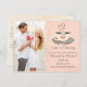 Kärlek brinner! Espresso, din glädje över dina kommande nybörjare med en latte kärlek med det här söt kaffematalet, sparar datumkorten i krämen, bruna, och silver med ett kopp kaffe som kan monogrammeras med initialer i bruden och brudgummen på dess färgad för peachy rosa. Den här ångande kopp av joe på en såpa med en sked på den har ett skumhjärta som flyter i den. Lägg till ett speciellt meddelande till vänner och nära anhöriga på baksidan av det här STD-vykortet och ditt favoritfoto på förlovningen eller bild på framsidan av det. Art © Chrissy H. Studios, LLC. Alla höger reserverade.