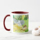 En kopp med en vacker skogsscen med dovhjort som dricker från en bäck nära en vattenfall. Originalkonst av W.B.